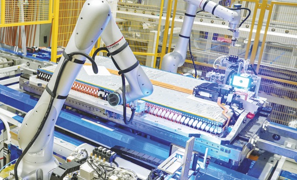 近日,走进比亚迪动力电池生产车间,一幅人机协同的现代工业图景呈现在眼前:一台台智能机器人在既定轨道上精准地辗转腾挪,进行着一系列精密操作;技术工人巡视自动化设备的运行状态,通过操控屏实时监控各项生产参数……经过数道工序后,一块块银白色的动力电池新鲜“出炉”,随后进入叠片、装配、检测等工序,最后打包“下线”。